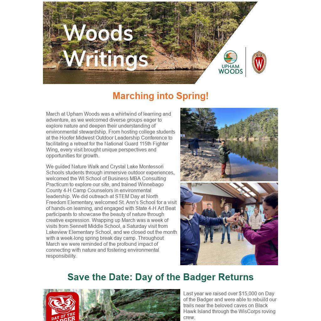 March at Upham Woods was a whirlwind of learning and adventure, as we welcomed diverse groups eager to explore nature and deepen their understanding of environmental stewardship. From hosting college students at the Hoofer Midwest Outdoor Leadership Conference to facilitating a retreat for the National Guard 115th Fighter Wing, every visit brought unique perspectives and opportunities for growth.