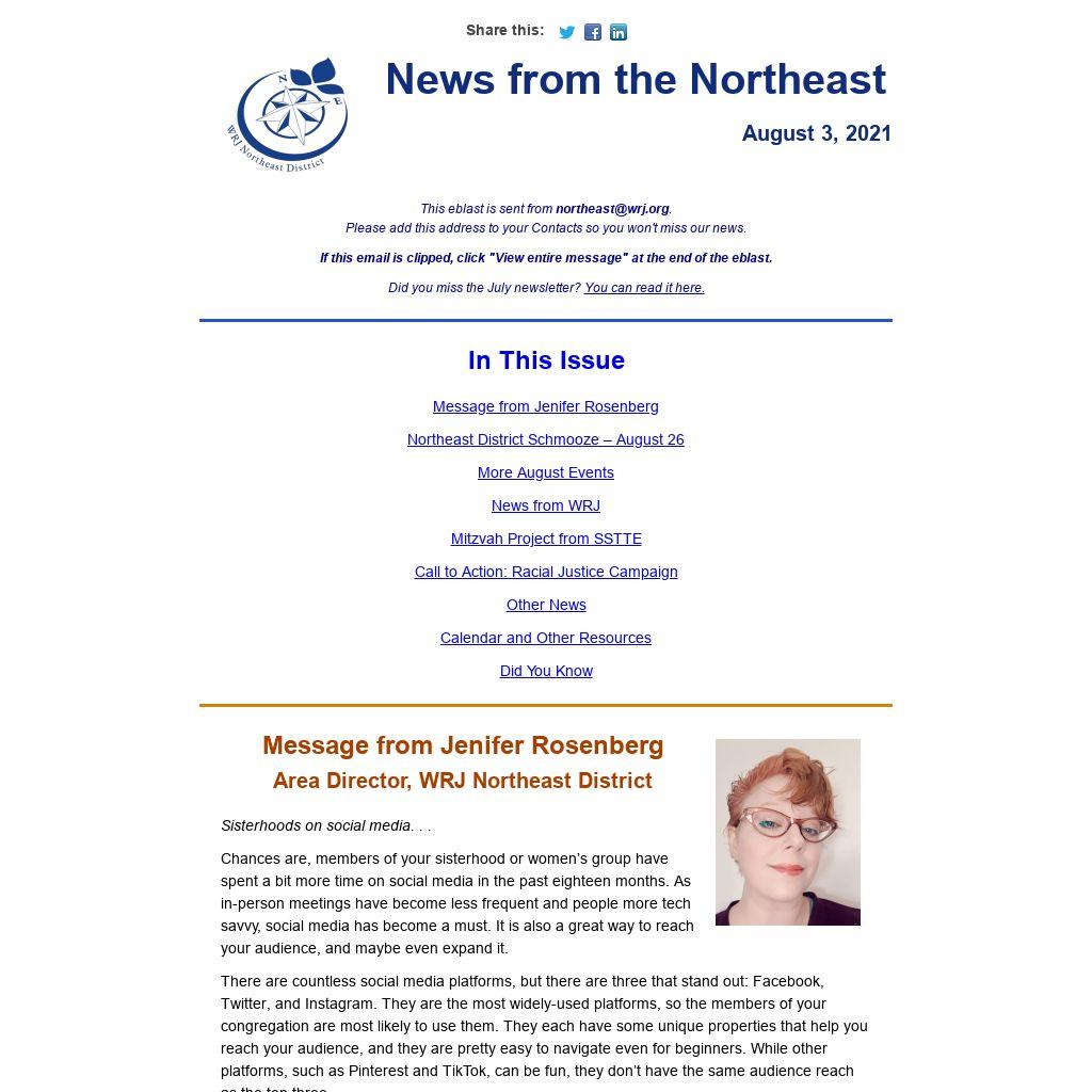 Area Director, WRJ Northeast District Sisterhoods on social media. . .