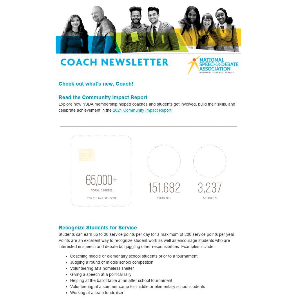 Students can earn up to 20 service points per day for a maximum of 200 service points per year. Points are an excellent way to recognize student work as well as encourage students who are interested in speech and debate but juggling other responsibilities. Examples include: