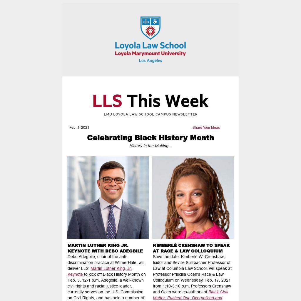 Debo Adegbile, chair of the anti-discrimination practice at WilmerHale, will deliver LLS' Martin Luther King, Jr. Keynote to kick off Black History Month on Feb. 3, 12-1 p.m. Adegbile, a well-known civil rights and racial justice leader, currently serves on the U.S. Commission on Civil Rights, and has held a number of leadership roles at the NAACP Legal Defense Fund. More>>