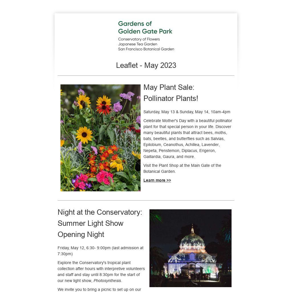 Please join us Saturday, May 20 for a lunch celebration and fundraiser benefiting the Gardens of Golden Gate Park – Conservatory of Flowers, Japanese Tea Garden, and San Francisco Botanical Garden.