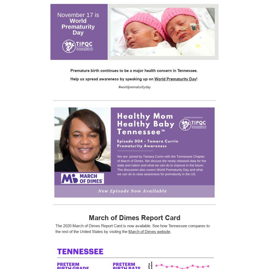 The 2020 March of Dimes Report Card is now available. See how Tennessee compares to the rest of the United States by visiting the March of Dimes website.