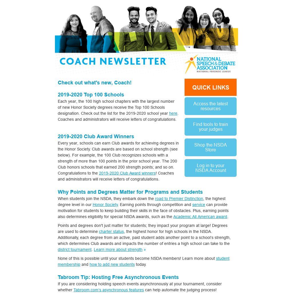Financial Support for Students in Need of Tools for Online CompetitionThanks to the generosity of The Julia Burke Foundation, coaches can apply for financial support on behalf of NSDA member students who lack needed technology resources (webcams, microphones, laptop, hotspots, etc.) to successfully compete in online speech and debate activities. Advisors for active NSDA member schools should fill out this form for committee consideration.