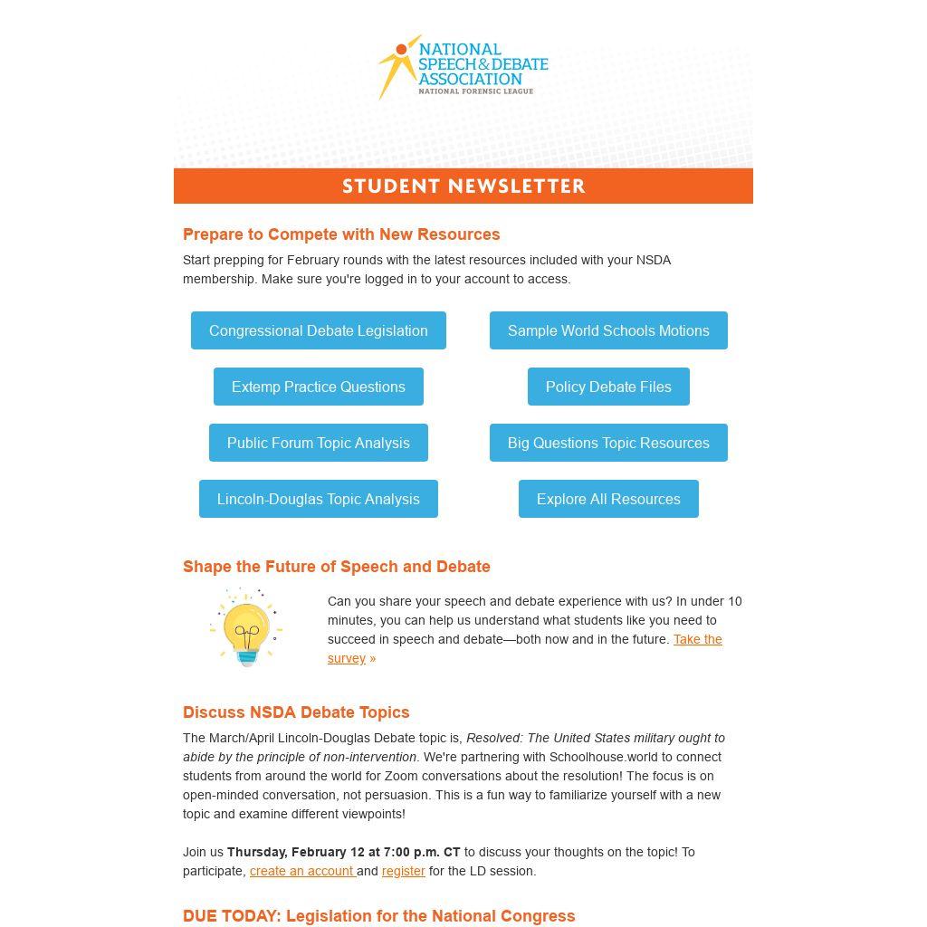 Start prepping for February rounds with the latest resources included with your NSDA membership. Make sure you're logged in to your account to access.
