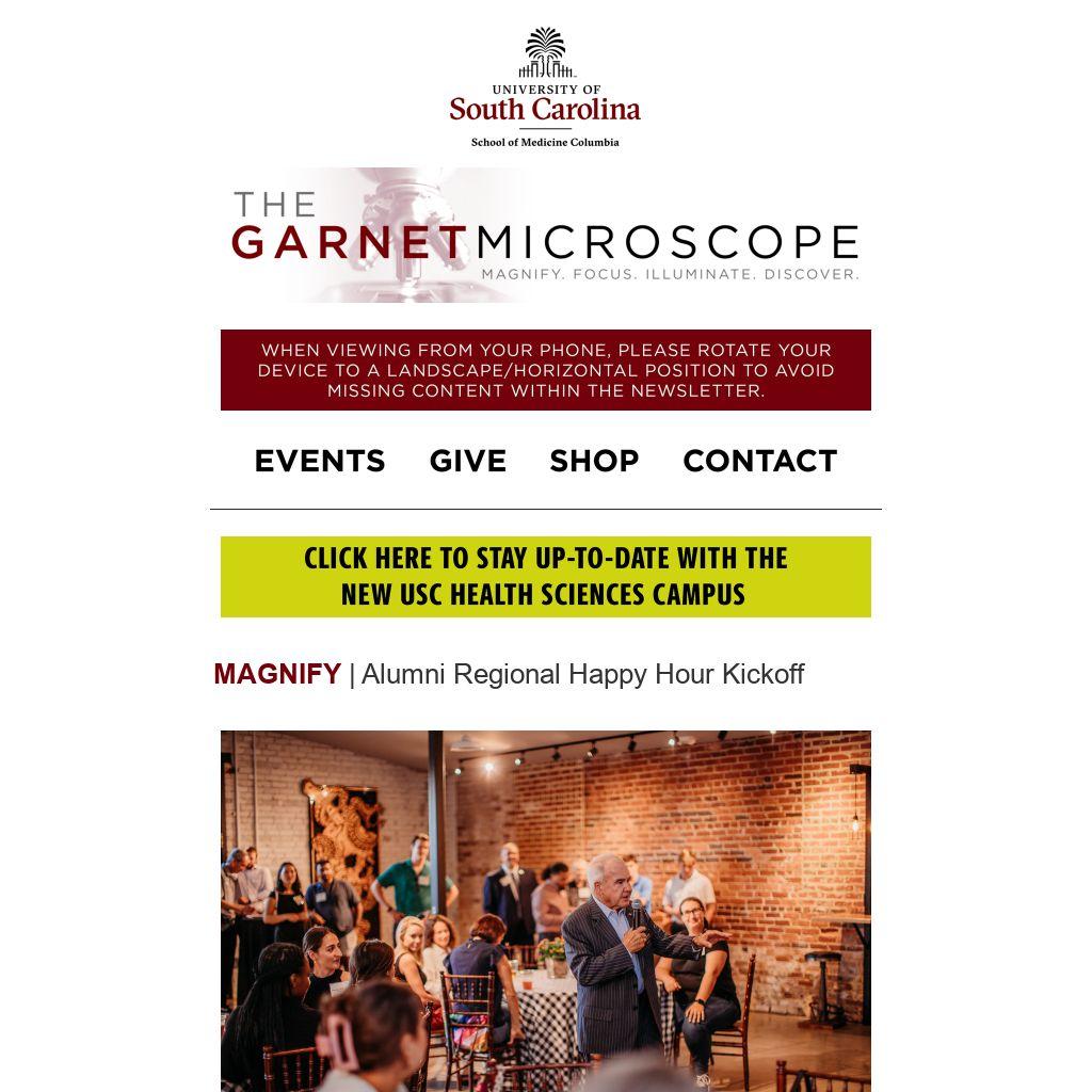 The 2024 SOMC Alumni Regional Happy Hour Tour is officially underway! On Wednesday, Aug. 28, we kicked off in the Midlands for an evening of fellowship and networking with both local alumni and new students from all programs. The event featured catered appetizers, a private bar, and an opportunity for students to play "Networking Bingo," a fun engagement activity that allowed them to make connections with SOMC graduates in the area, the Alumni Engagement team, and each other. Remarks were provided by Interim Dean Gerald Harmon, MD and plenty of contact information was exchanged throughout the room, making this evening a meaningful event for both our alumni and new students.