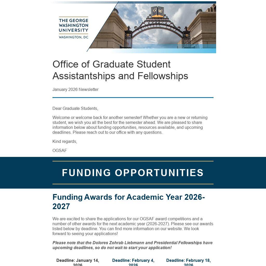 The Office of Graduate Student Assistantships and Fellowships serves as a resource for graduate students looking for funding opportunities at the George Washington University.