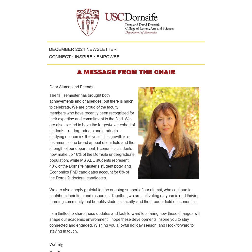 I am thrilled to share these updates and look forward to sharing how these changes will shape our academic environment. I hope these developments inspire you to stay connected and engaged. Wishing you a joyful holiday season, and I look forward to staying in touch.