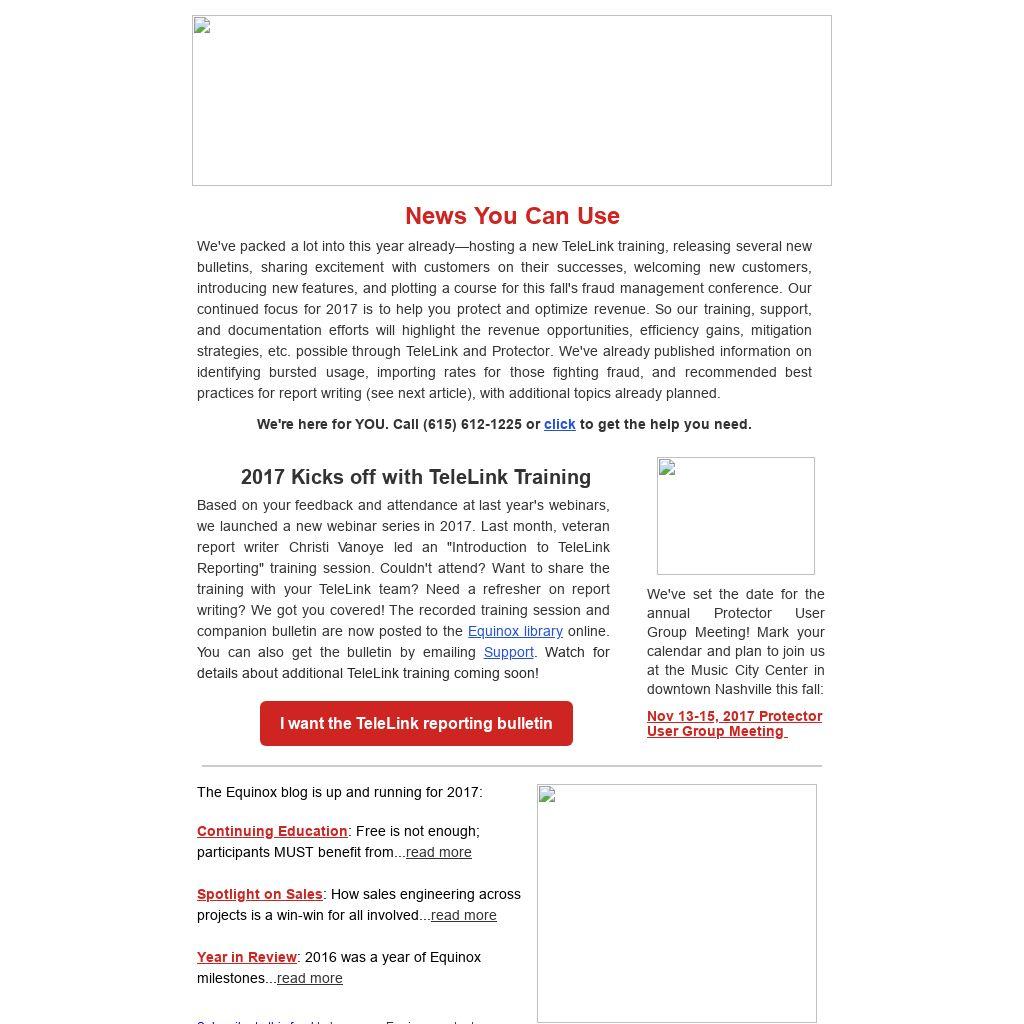 We've packed a lot into this year already—hosting a new TeleLink training, releasing several new bulletins, sharing excitement with customers on their successes, welcoming new customers, introducing new features, and plotting a course for this fall's fraud management conference. Our continued focus for 2017 is to help you protect and optimize revenue. So our training, support, and documentation efforts will highlight the revenue opportunities, efficiency gains, mitigation strategies, etc. possible through TeleLink and Protector. We've already published information on identifying bursted usage, importing rates for those fighting fraud, and recommended best practices for report writing (see next article), with additional topics already planned.
