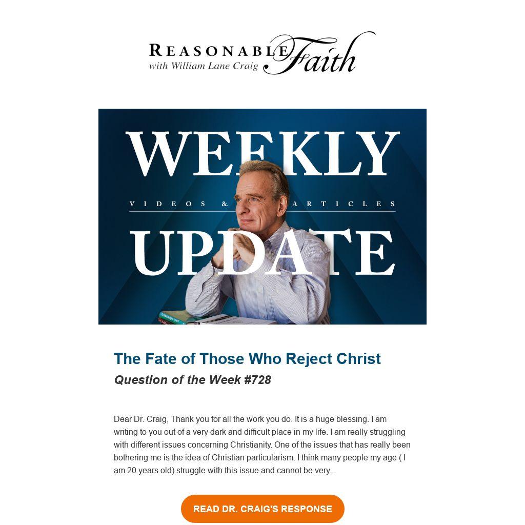 Dear Dr. Craig, Thank you for all the work you do. It is a huge blessing. I am writing to you out of a very dark and difficult place in my life. I am really struggling with different issues concerning Christianity. One of the issues that has really been bothering me is the idea of Christian particularism. I think many people my age ( I am 20 years old) struggle with this issue and cannot be very...
