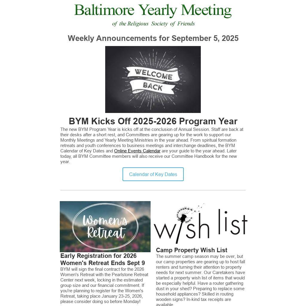 BYM will sign the final contract for the 2026 Women's Retreat with the Pearlstone Retreat Center next week, locking in the estimated group size and our financial commitment. If you're planning to register for the Women's Retreat, taking place January 23-25, 2026, please consider doing so before Monday!