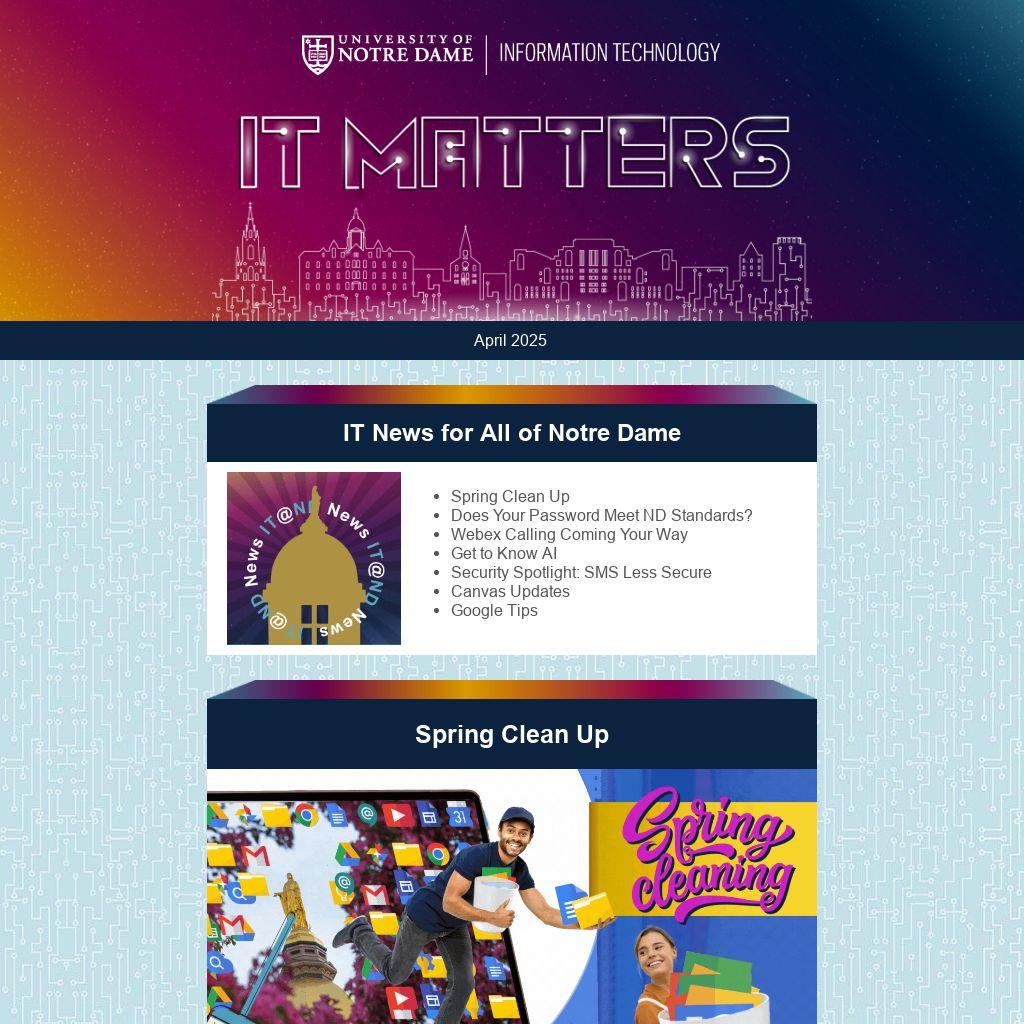 REMINDER: Content created by any graduating student while at Notre Dame will be deleted in July. Be sure any documents and files your student worker(s) created and/or own are stored in a Shared Drive.Â