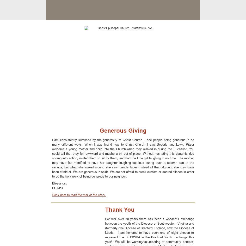 Our Grace Network assignments for July are peanut butter (in 16 oz. or larger jars), toilet paper, female products, and deodorant. They also are in need of grocery bags for the food pantry. Use a Food Lion card, or Kroger Plus Shopper's Card and your donations will help the pantry as well as Christ Episcopal Church. Should you not have time to shop, Barbara Holland or Sue Rosser will be delighted to assist.