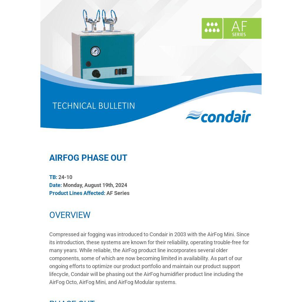 For direct space nozzle system opportunities Condair will offer a revised product portfolio: