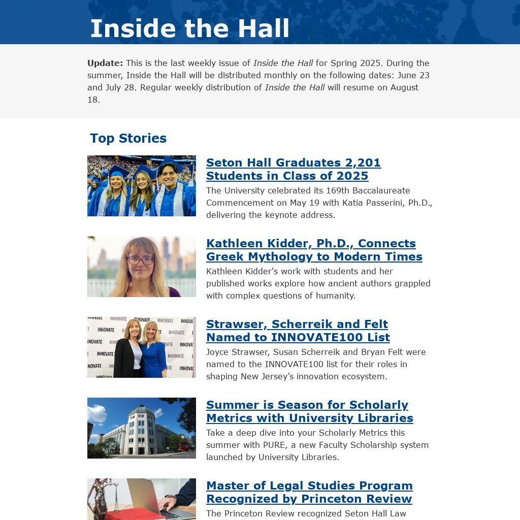 Update: This is the last weekly issue of Inside the Hall for Spring 2025. During the summer, Inside the Hall will be distributed monthly on the following dates: June 23 and July 28. Regular weekly distribution of Inside the Hall will resume on August 18.