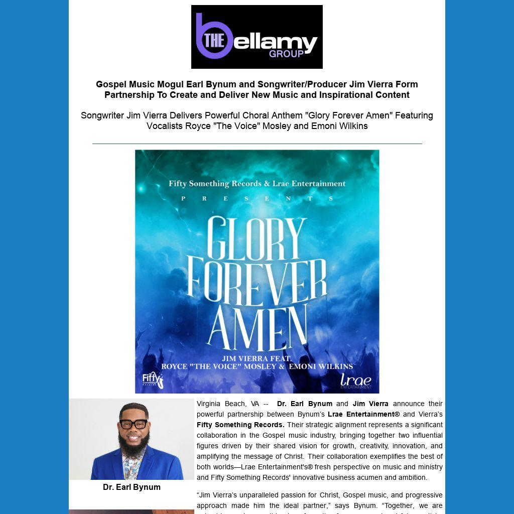 Songwriter Jim Vierra Delivers Powerful Choral Anthem "Glory Forever Amen" Featuring Vocalists Royce "The Voice" Mosley and Emoni Wilkins |