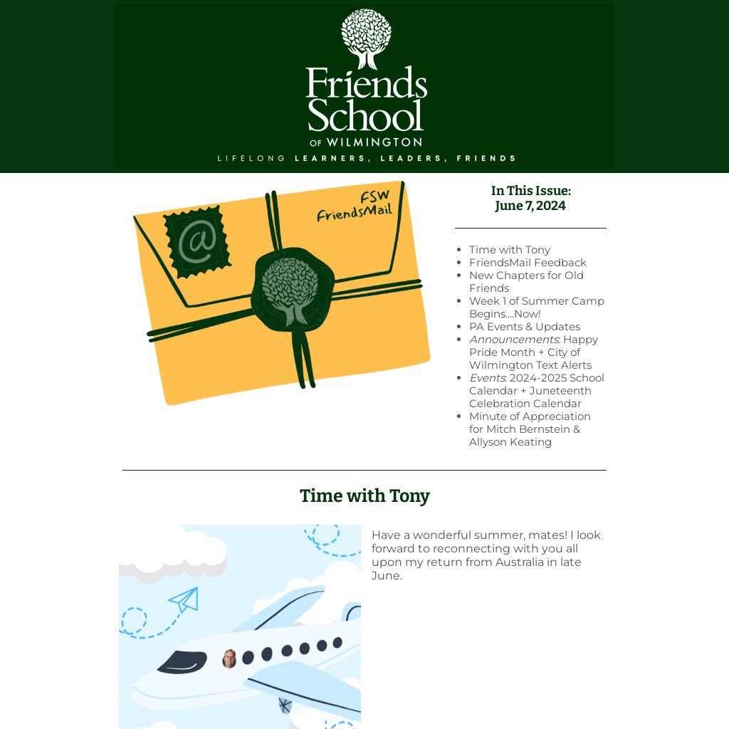 Plus, did you see last week's FriendsMail with a check-in on our graduating classes from 2016 and 2020? In addition to NC-based schools like UNC-Chapel Hill, NC State, UNC-Wilmington, Meredith College, East Carolina, and Guilford College, we also have FSW alums attending Savannah College of Art & Design, Virginia Tech, University of Miami, Mississippi College, University of Portland, Grinnell College, and New York University!