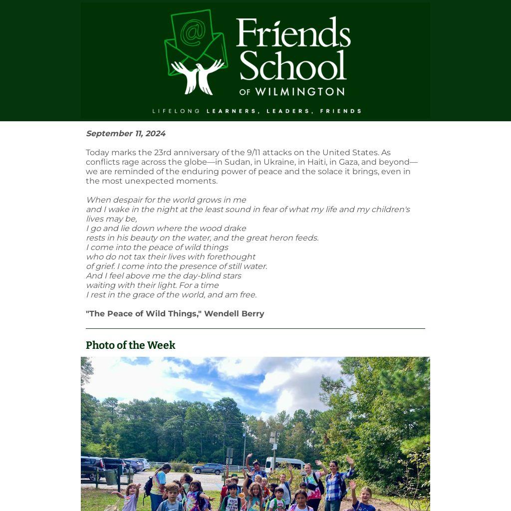 Last Wednesday morning we gathered as a school in Meeting for Worship to welcome the new year in the idyllic setting in front of Longleaf Cottage. Within the silence, I asked a query to students, faculty, and staff in attendance, to reflect on how they could be a steward for the Friends School of Wilmington this year.