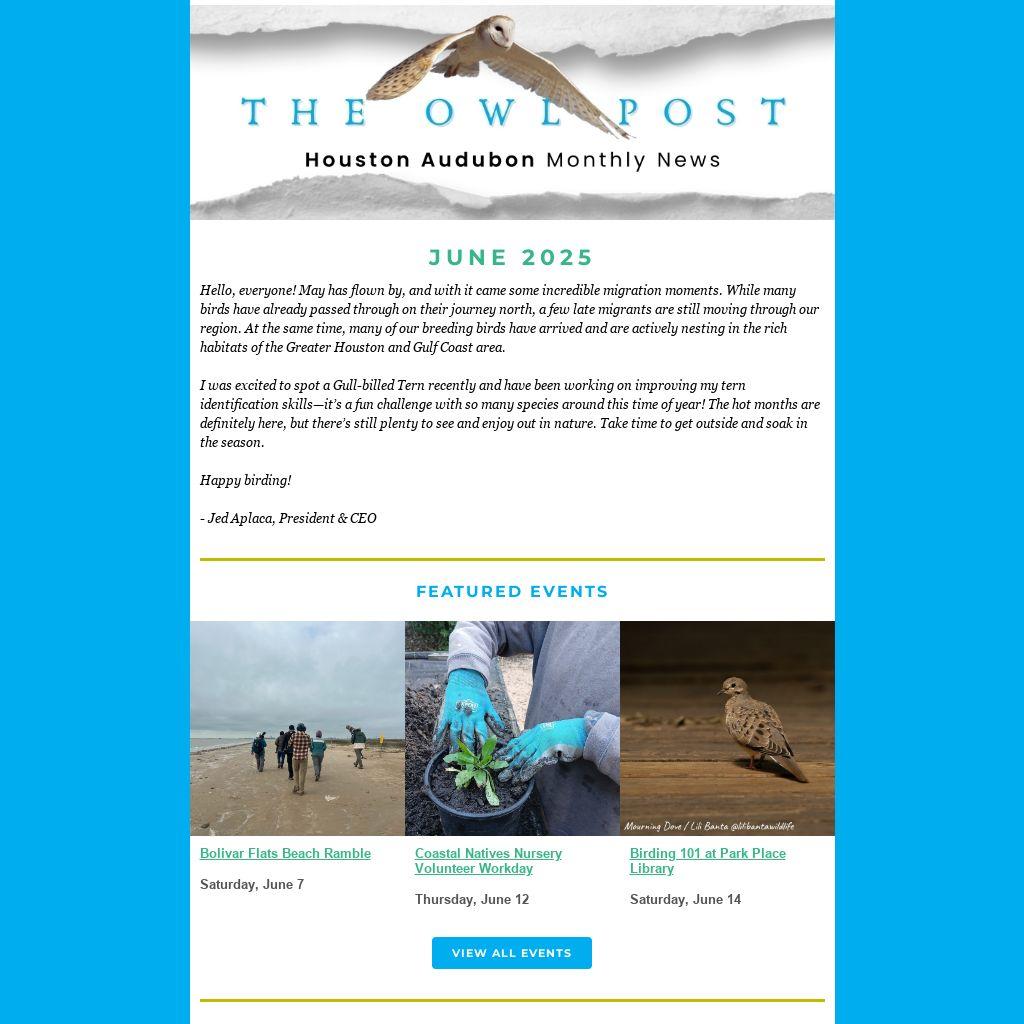 Hello, everyone! May has flown by, and with it came some incredible migration moments. While many birds have already passed through on their journey north, a few late migrants are still moving through our region. At the same time, many of our breeding birds have arrived and are actively nesting in the rich habitats of the Greater Houston and Gulf Coast area.