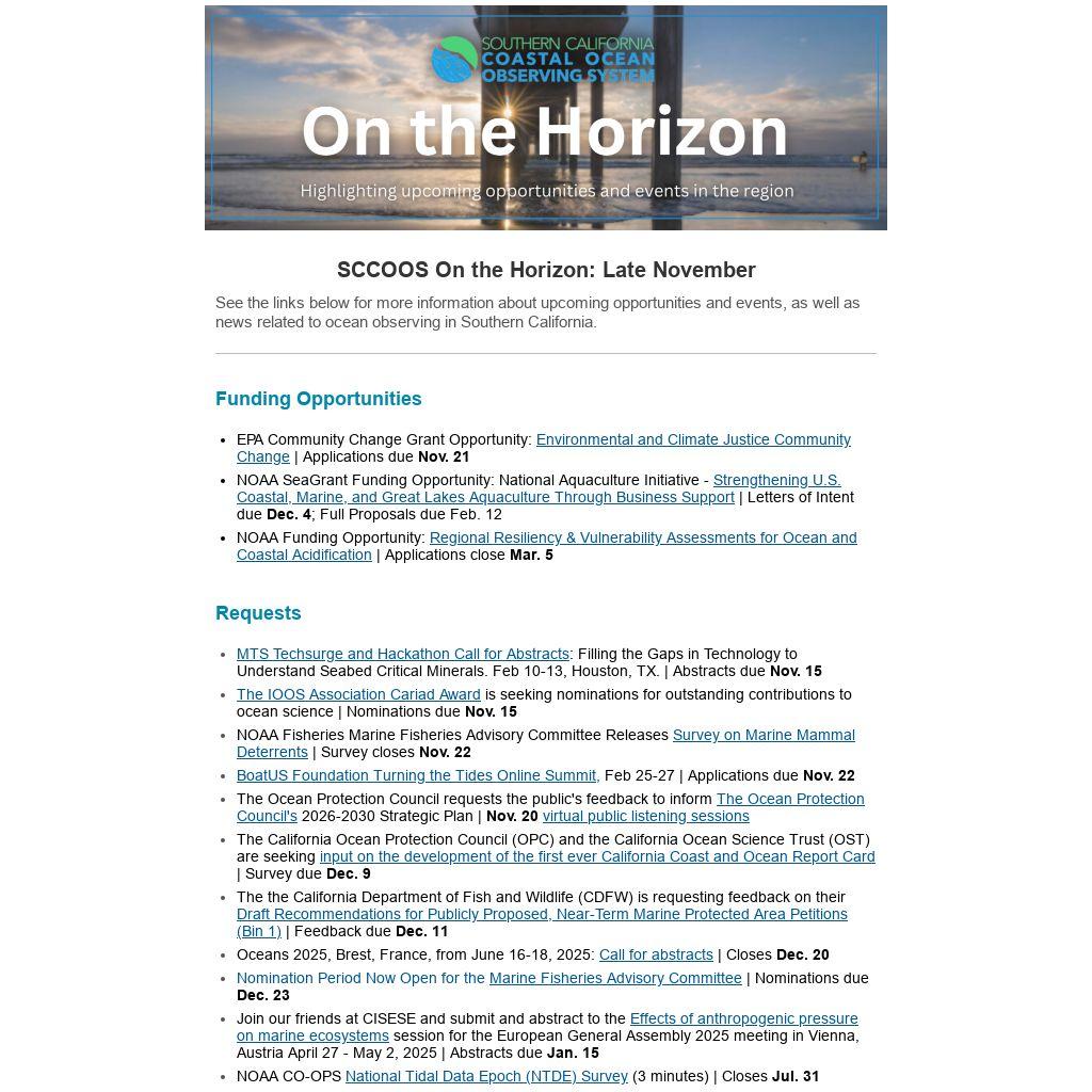 Share your upcoming event, opportunity, or news by emailing us at info@SCCOOS.org!