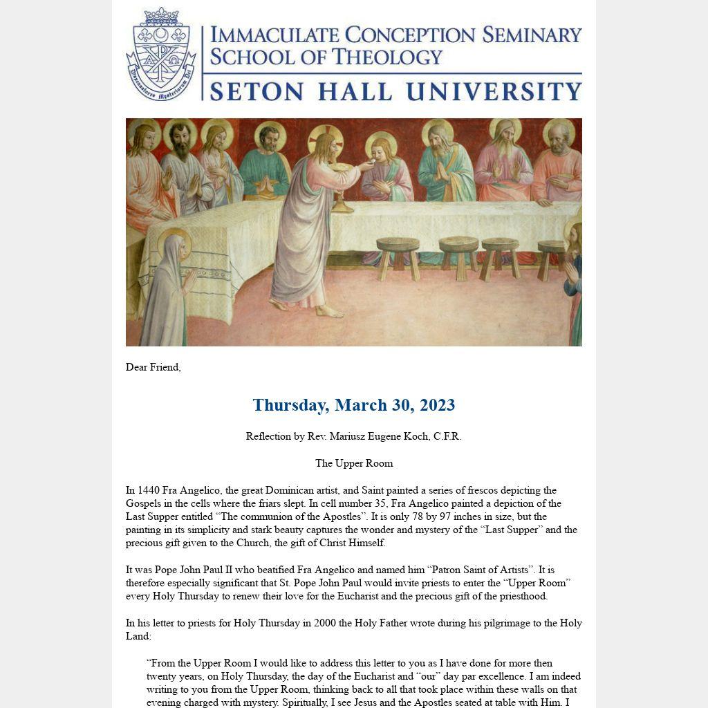 It was Pope John Paul II who beatified Fra Angelico and named him “Patron Saint of Artists”. It is therefore especially significant that St. Pope John Paul would invite priests to enter the “Upper Room” every Holy Thursday to renew their love for the Eucharist and the precious gift of the priesthood.