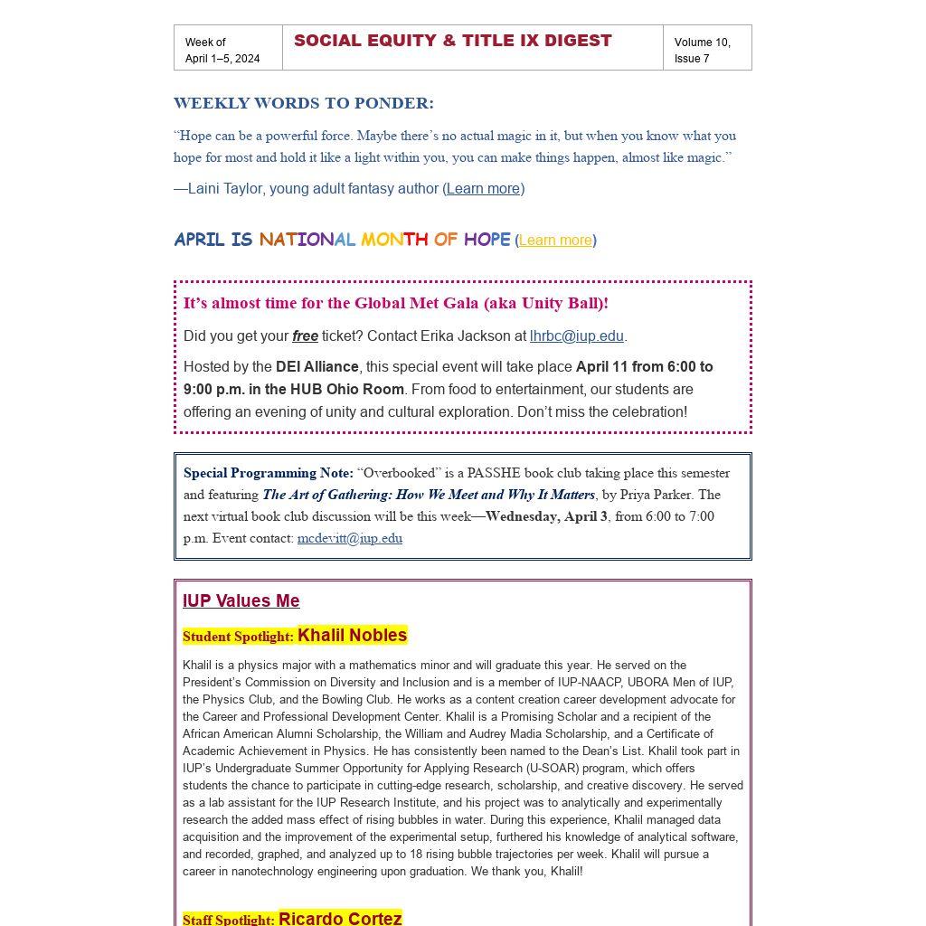 A note about IUP Values Me: Each week, we highlight one student and one staff member to “shine a spotlight” on their leadership and involvement in campus programs and their great work assisting our campus community with diversity, equity, and inclusion (DEI) and/or civil rights awareness. If you have a suggestion for an IUP community member to feature in this section, please email social-equity@iup.edu.