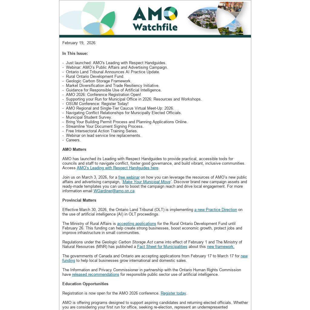 AMO has launched its Leading with Respect Handguides to provide practical, accessible tools for councils and staff to navigate conflict, foster good governance, and build vibrant, inclusive communities. Access AMO’s Leading with Respect Handguides here.