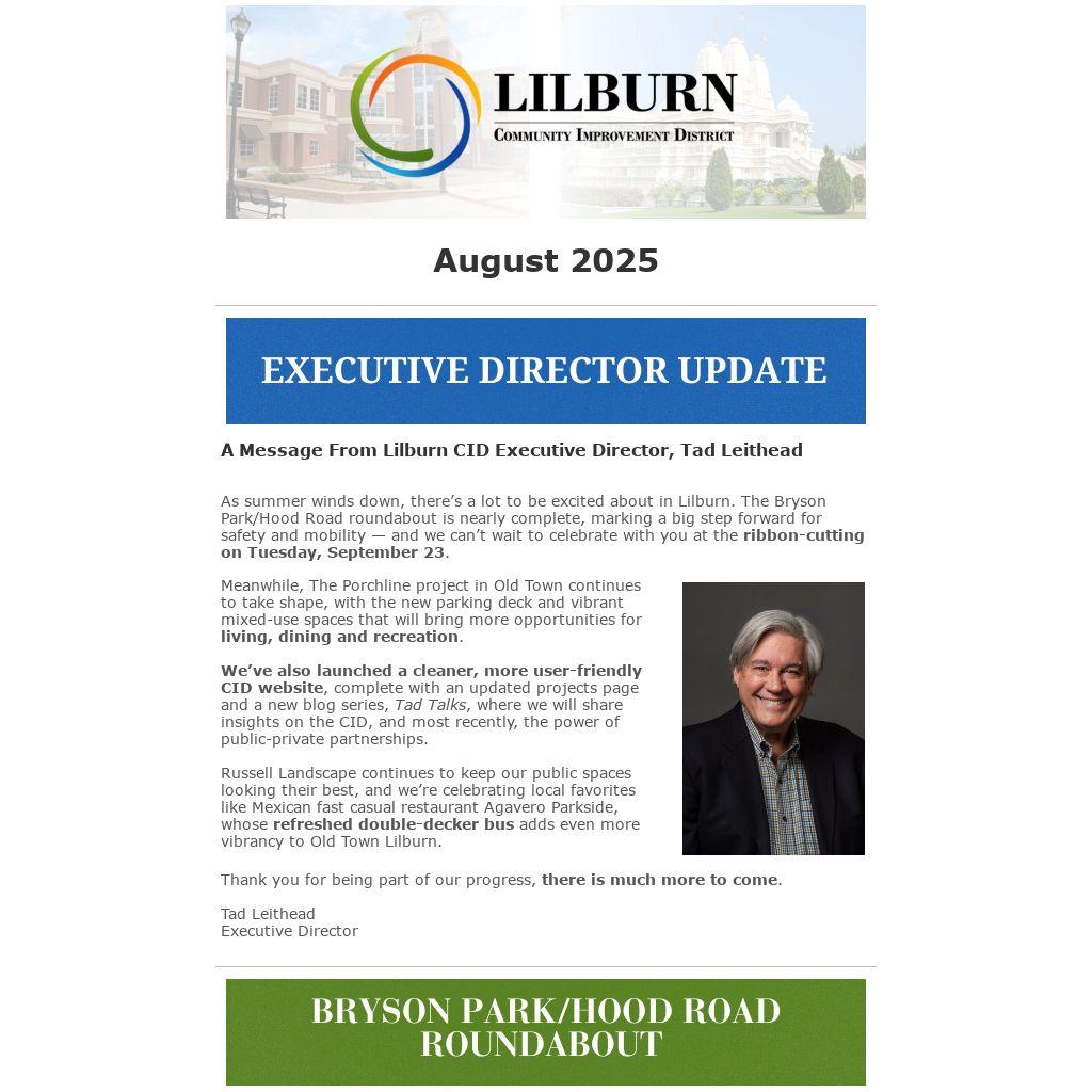 A Message From Lilburn CID Executive Director, Tad Leithead |