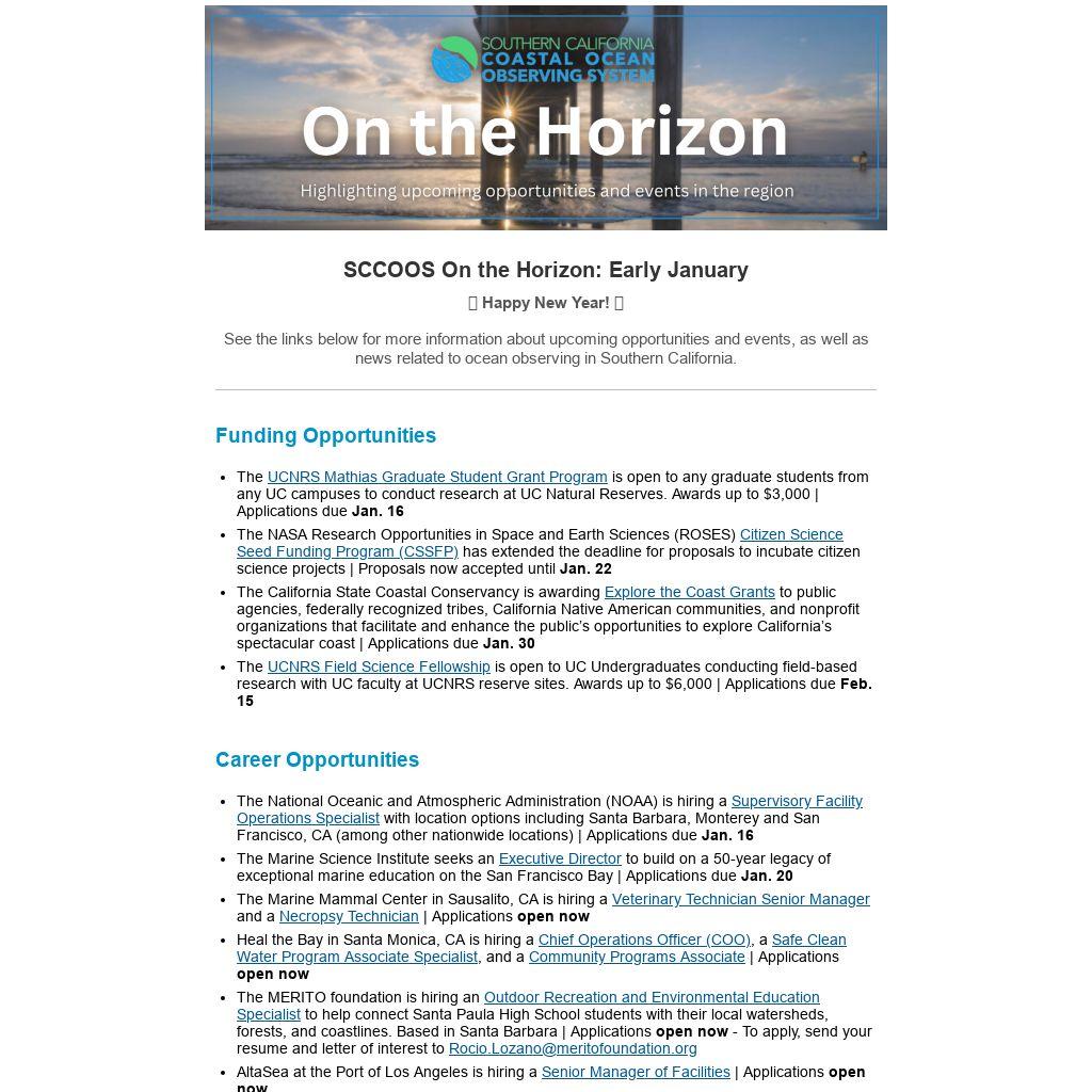 - The Surfrider Foundation is accepting applications for the Coasts and Climate Graduate Student Internship for Summer 2026 | Applications due Jan. 16