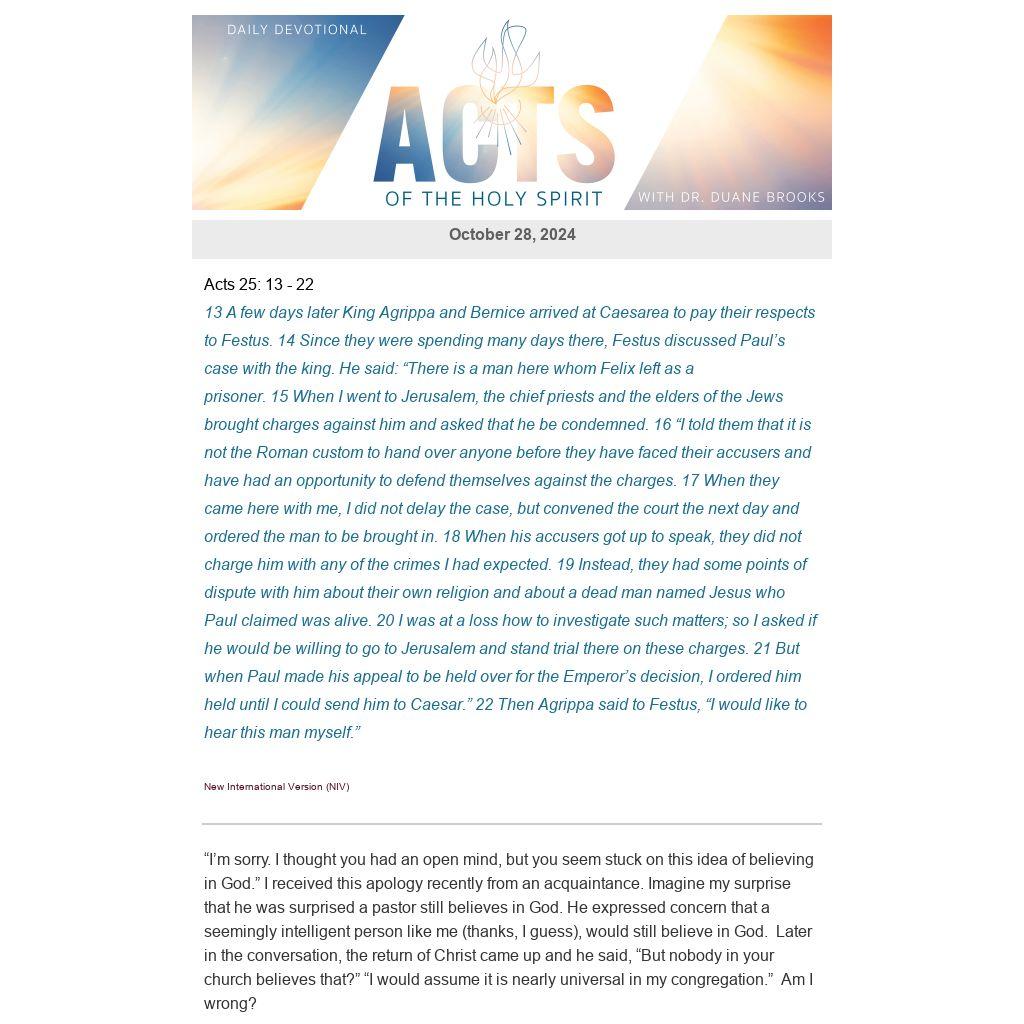 What is the basic point of disagreement between Christians and non-Christians? When King Herod Agrippa and Bernice came to beautiful Caesarea by the Sea for a vacation, Festus decided to get a second opinion on Paul. At the trial, Festus (not the one on Gunsmoke) had expected to hear of some terrible crime committed by Paul, only to discover it was not true. But did you read what he saw as the point of dispute: “They had some points of dispute with (Paul) about their own religion and about a dead man named Jesus who Paul claimed was alive” (Acts 25:19). Festus was mystified that anybody actually believed a dead person could return to life.