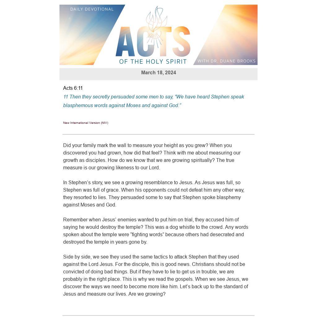 Side by side, we see they used the same tactics to attack Stephen that they used against the Lord Jesus. For the disciple, this is good news. Christians should not be convicted of doing bad things. But if they have to lie to get us in trouble, we are probably in the right place. This is why we read the gospels. When we see Jesus, we discover the ways we need to become more like him. Let’s back up to the standard of Jesus and measure our lives. Are we growing?