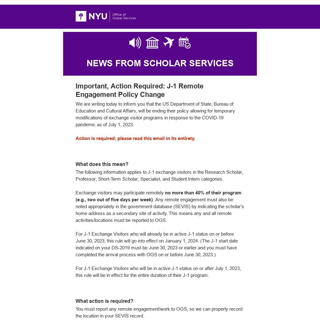 For J-1 Exchange Visitors who will already be in active J-1 status on or before June 30, 2023, this rule will go into effect on January 1, 2024. (The J-1 start date indicated on your DS-2019 must be June 30, 2023 or earlier and you must have completed the arrival process with OGS on or before June 30, 2023.)