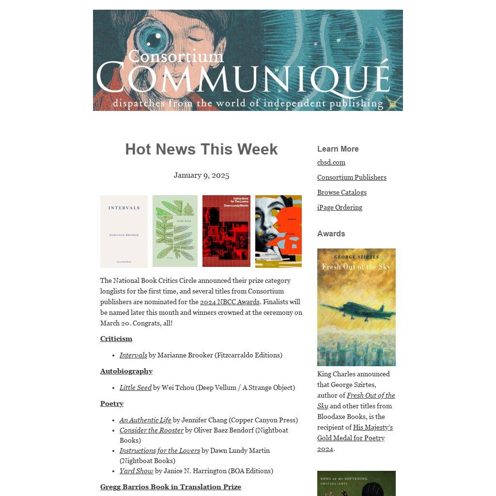 | The National Book Critics Circle announced their prize category longlists for the first time, and several titles from Consortium publishers are nominated for the 2024 NBCC Awards. Finalists will be named later this month and winners crowned at the ceremony on March 20. Congrats, all!