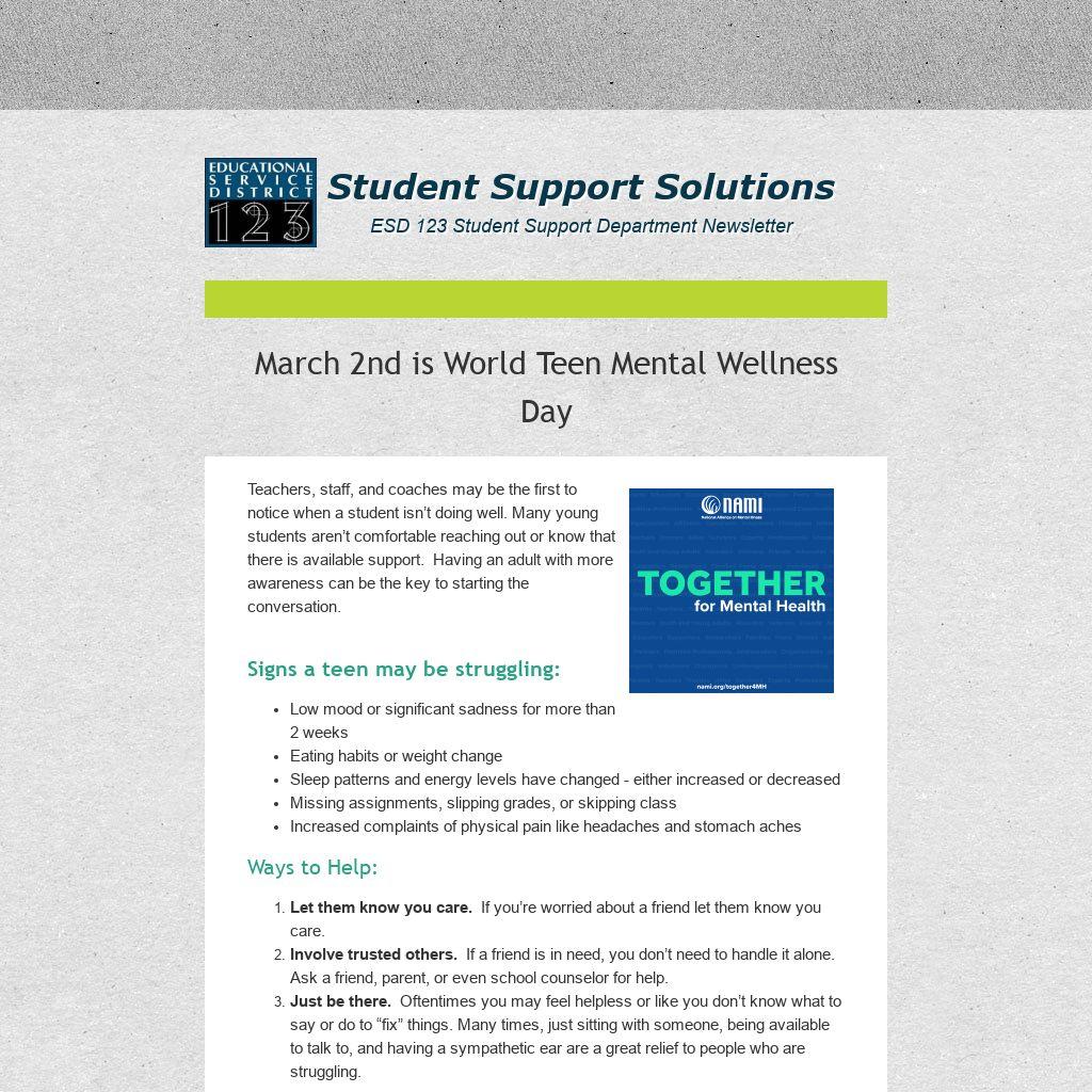 We know self-care can look different for everyone. Usually, self-care involves activities that relax you, are fun and energizing. This doesn’t have to be overcomplicated or expensive. Activities can be as simple as reading a book or even going for a walk. Self-care also means taking care of yourself by making sure you are eating regularly, getting enough sleep, and caring for your overall health. We know you are all working hard in your roles, but please remember to make self-care a priority this month. Think about at least one activity you can engage in each day and set a specific self-care goal for this month. For example, “I will walk 30 minutes every evening after dinner.” Make this a habit and see how effective it can be at reducing stress.