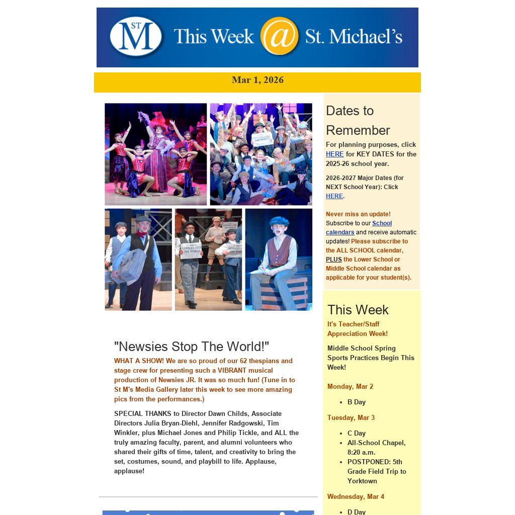 Get connected to keep abreast of St M news, events, calendar changes, and information.