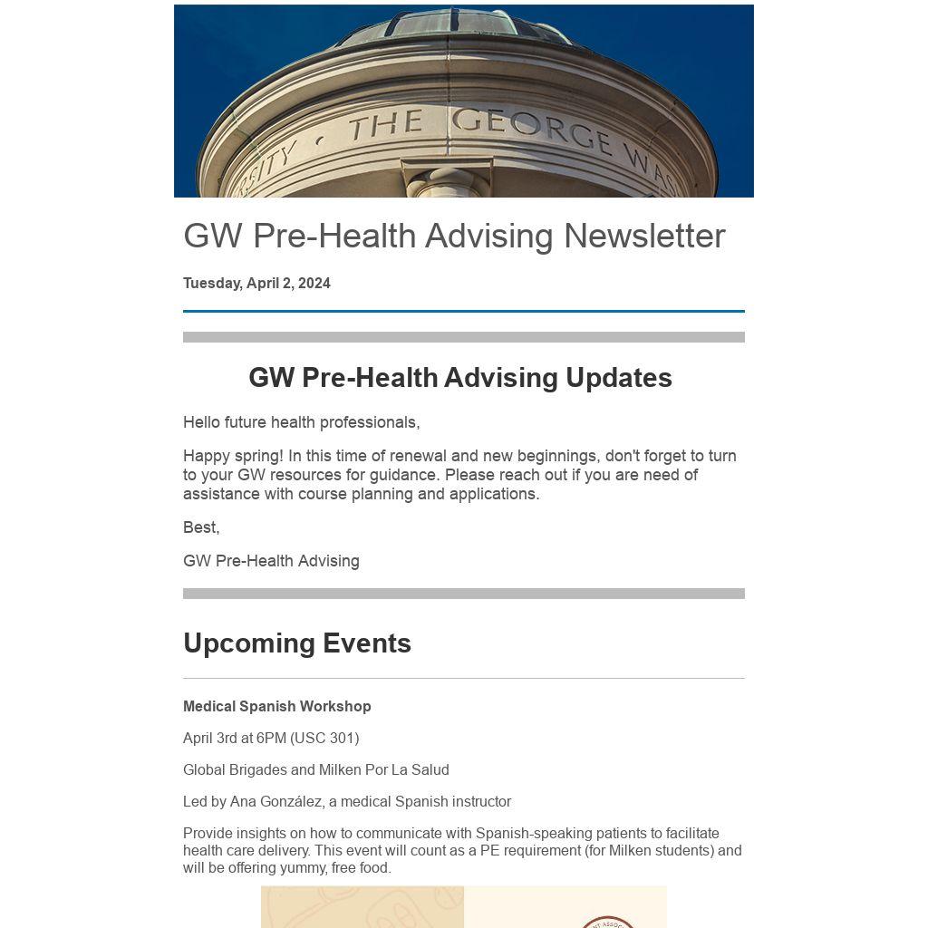 GW Pre-Health Advising Newsletter | GW Pre-Health Advising Updates |