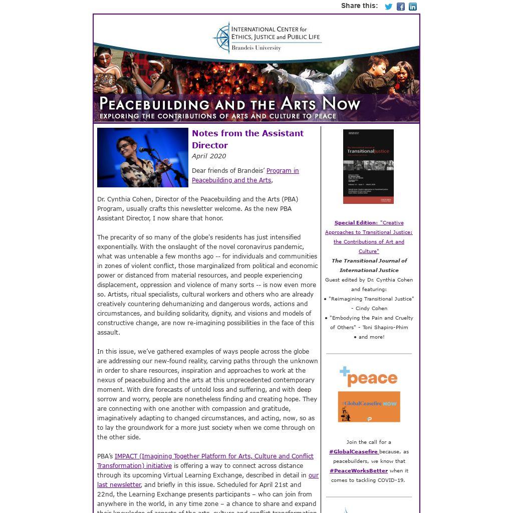 Dear friends of Brandeis’ Program in Peacebuilding and the Arts,