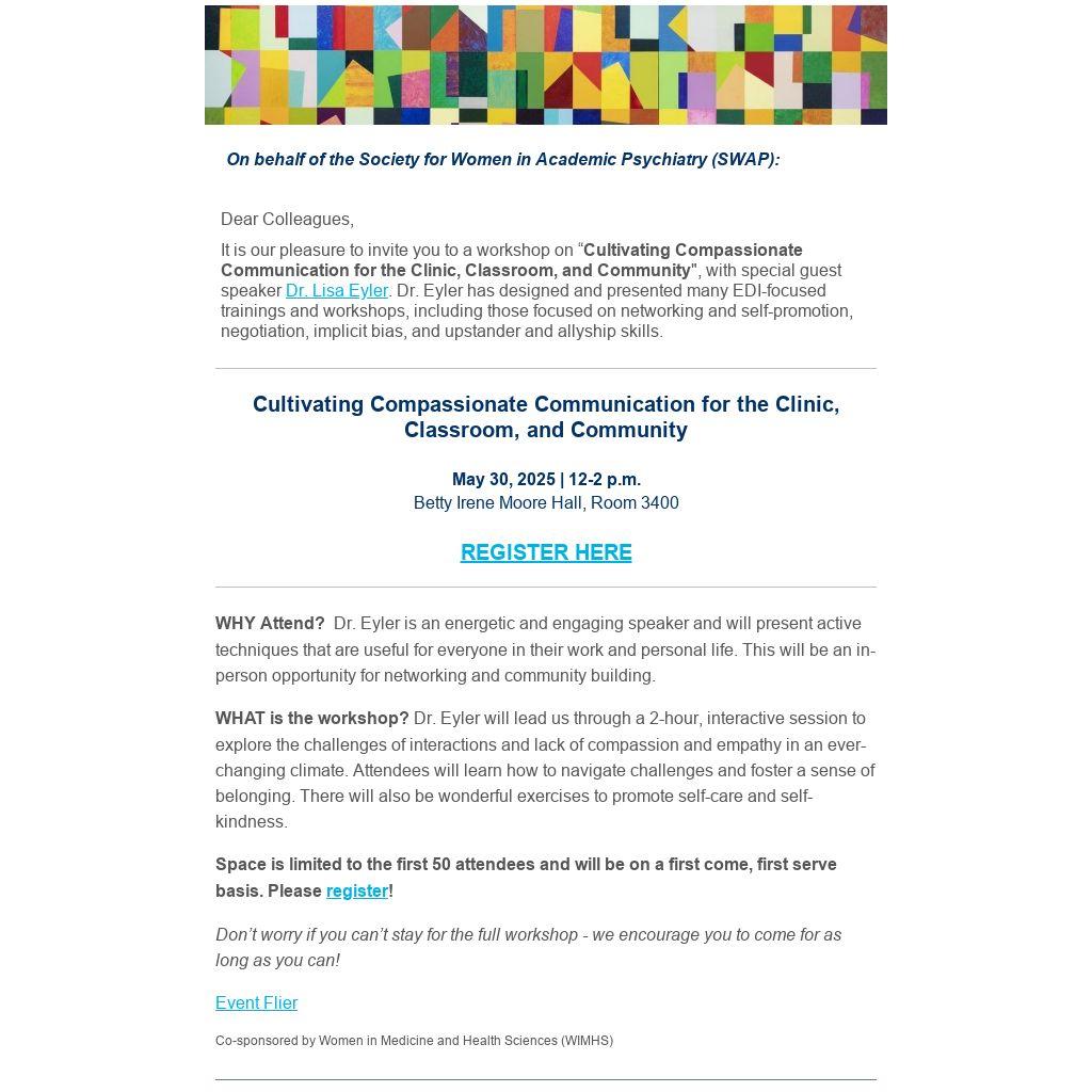 WHAT is the workshop? Dr. Eyler will lead us through a 2-hour, interactive session to explore the challenges of interactions and lack of compassion and empathy in an ever-changing climate. Attendees will learn how to navigate challenges and foster a sense of belonging. There will also be wonderful exercises to promote self-care and self-kindness.