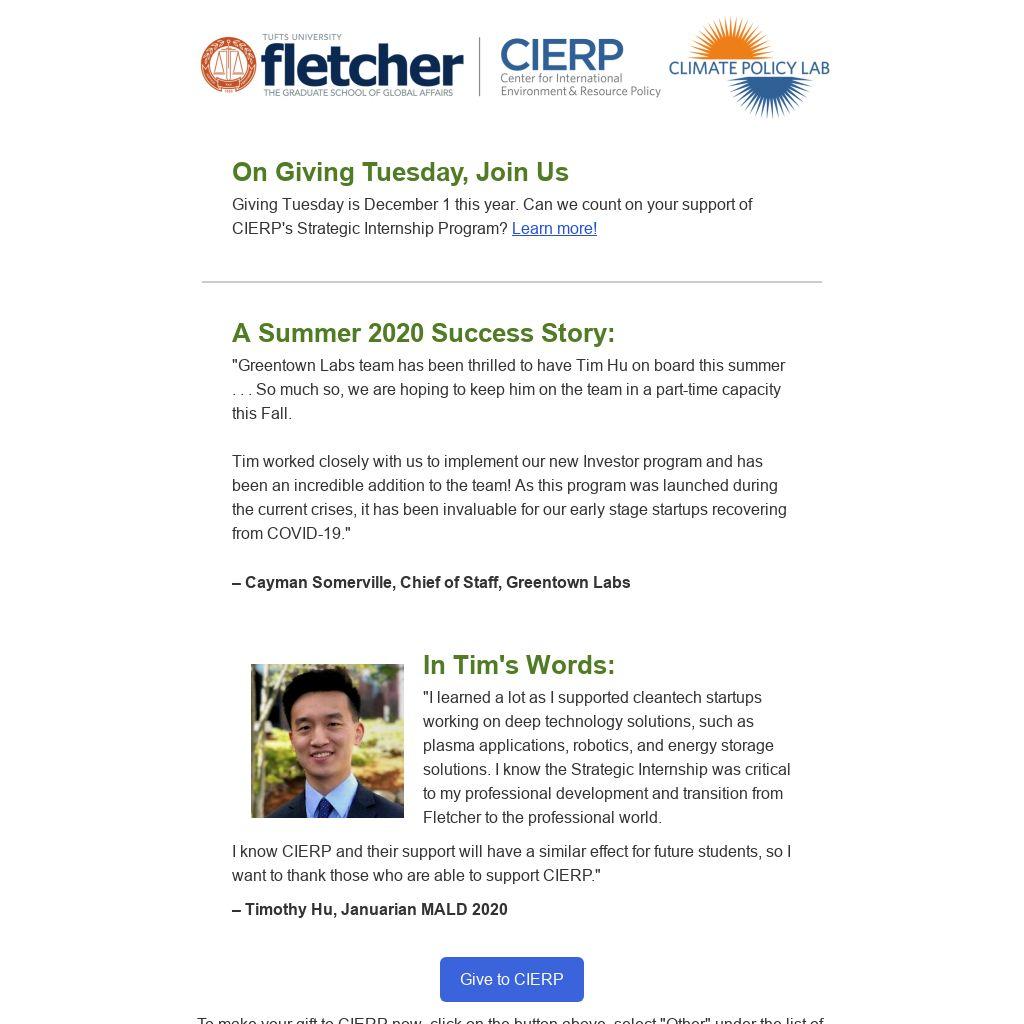I know CIERP and their support will have a similar effect for future students, so I want to thank those who are able to support CIERP."