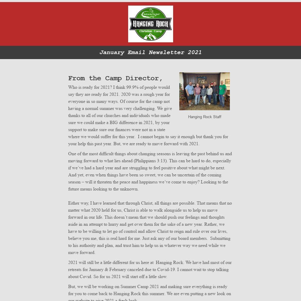 But, we will be working on Summer Camp 2021 and making sure everything is ready for you to come back to Hanging Rock this summer. We are even putting a new look on our website to give 2021 a fresh look.