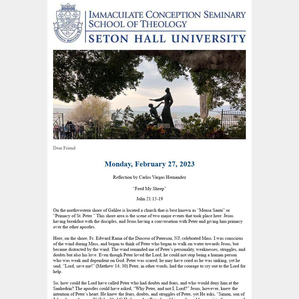 We, like Peter, have our own struggles and fears, yet we are encouraged by Peter’s example to always ask the Good Shepherd for help, and this is the time to do so. Lent gives us the opportunity to seek God’s guidance and mercy, particularly in the Sacrament of Reconciliation, so that by knowing and imitating the Good Shepherd, we may, too, feed His sheep and follow Him wherever He goes.