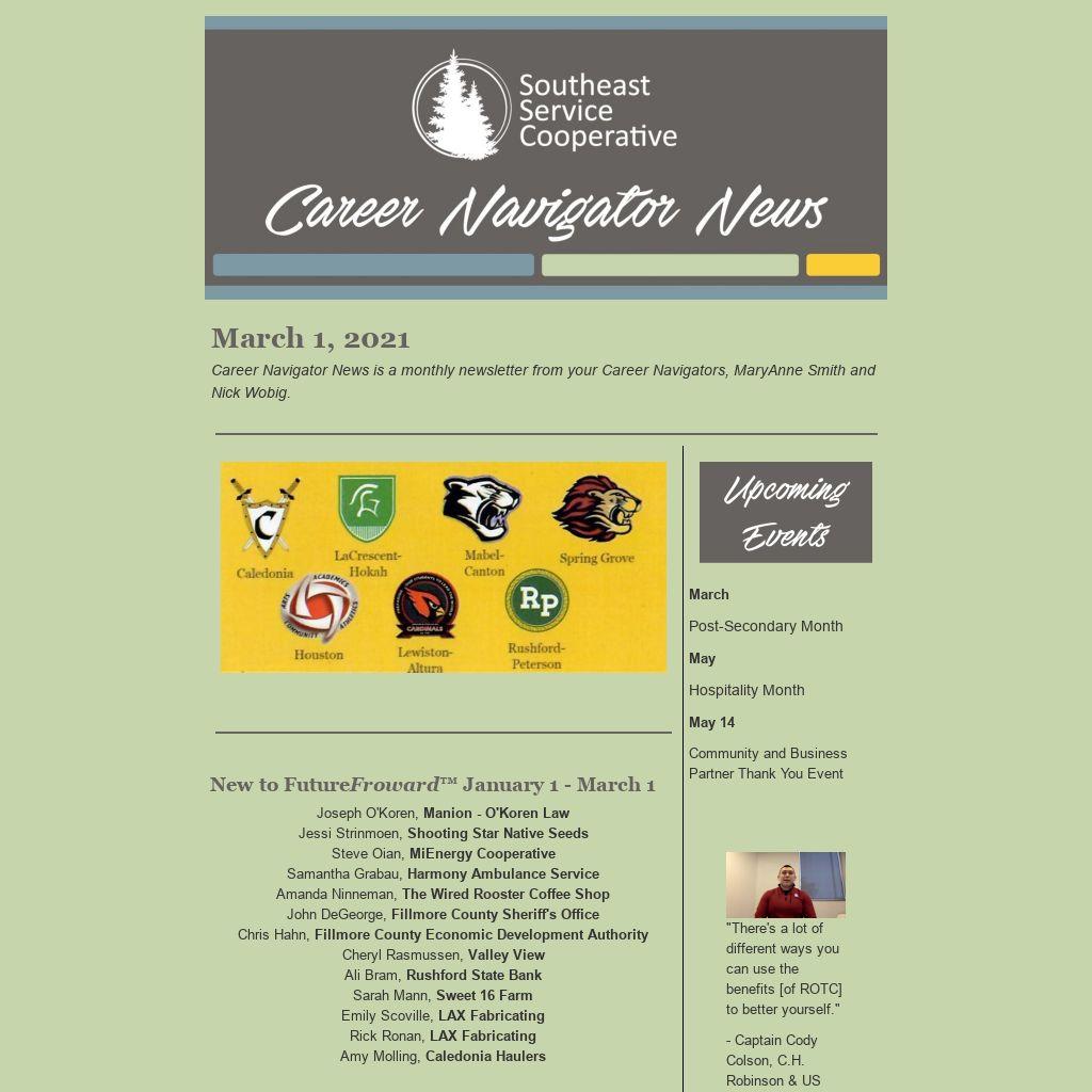 Thank You, Thank You, Thank YouOn May 14th, Southeast Service Cooperative and the Career Navigator team will be hosting a Thank You Event to recognize our community and business partners. Without their support, our school districts would not be where they are today with their use of FutureForward™. The experiences hosted by our business partners have included informational interviews, mock interviews, mentorships, work-based learning, and virtual career fairs. The support from our community partners has also been invaluable. From Workforce Development Inc. to our friends at local chambers of commerce, our support system is immense and still growing. Keep an eye out for more information on this event. We are really looking forward to it!