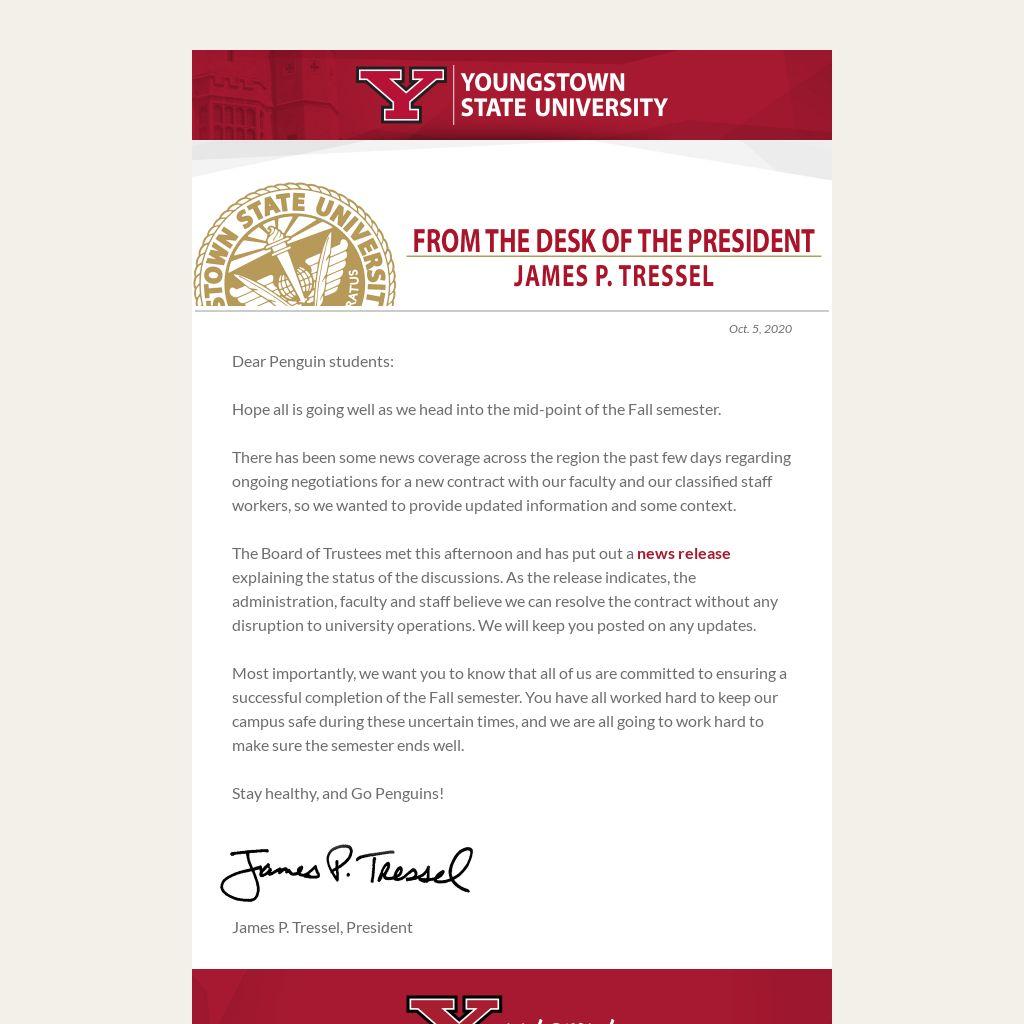 Most importantly, we want you to know that all of us are committed to ensuring a successful completion of the Fall semester. You have all worked hard to keep our campus safe during these uncertain times, and we are all going to work hard to make sure the semester ends well.