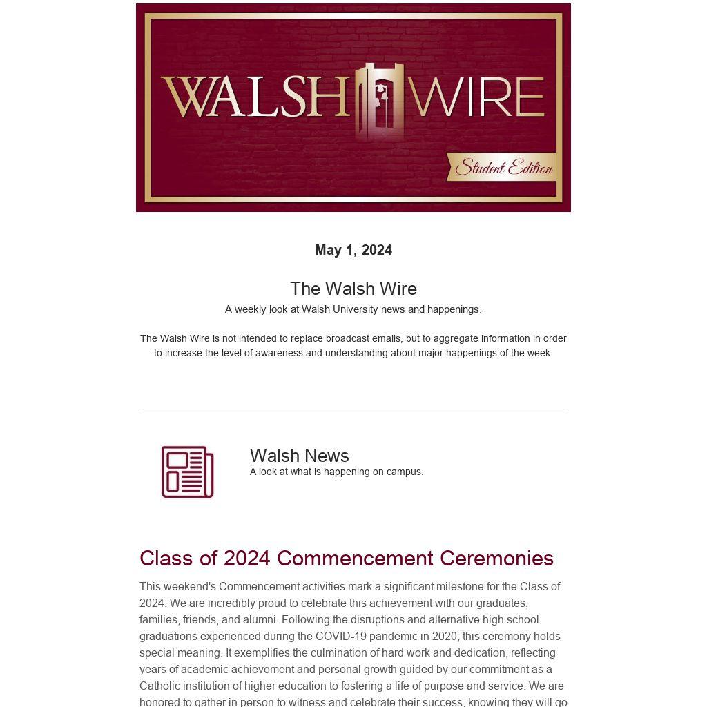 The Walsh Wire is not intended to replace broadcast emails, but to aggregate information in order to increase the level of awareness and understanding about major happenings of the week.