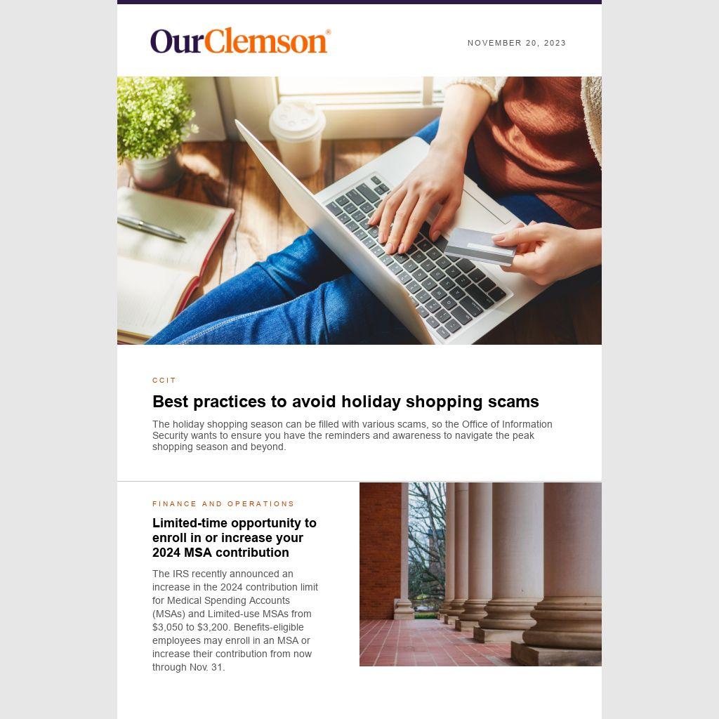 The holiday shopping season can be filled with various scams, so the Office of Information Security wants to ensure you have the reminders and awareness to navigate the peak shopping season and beyond.