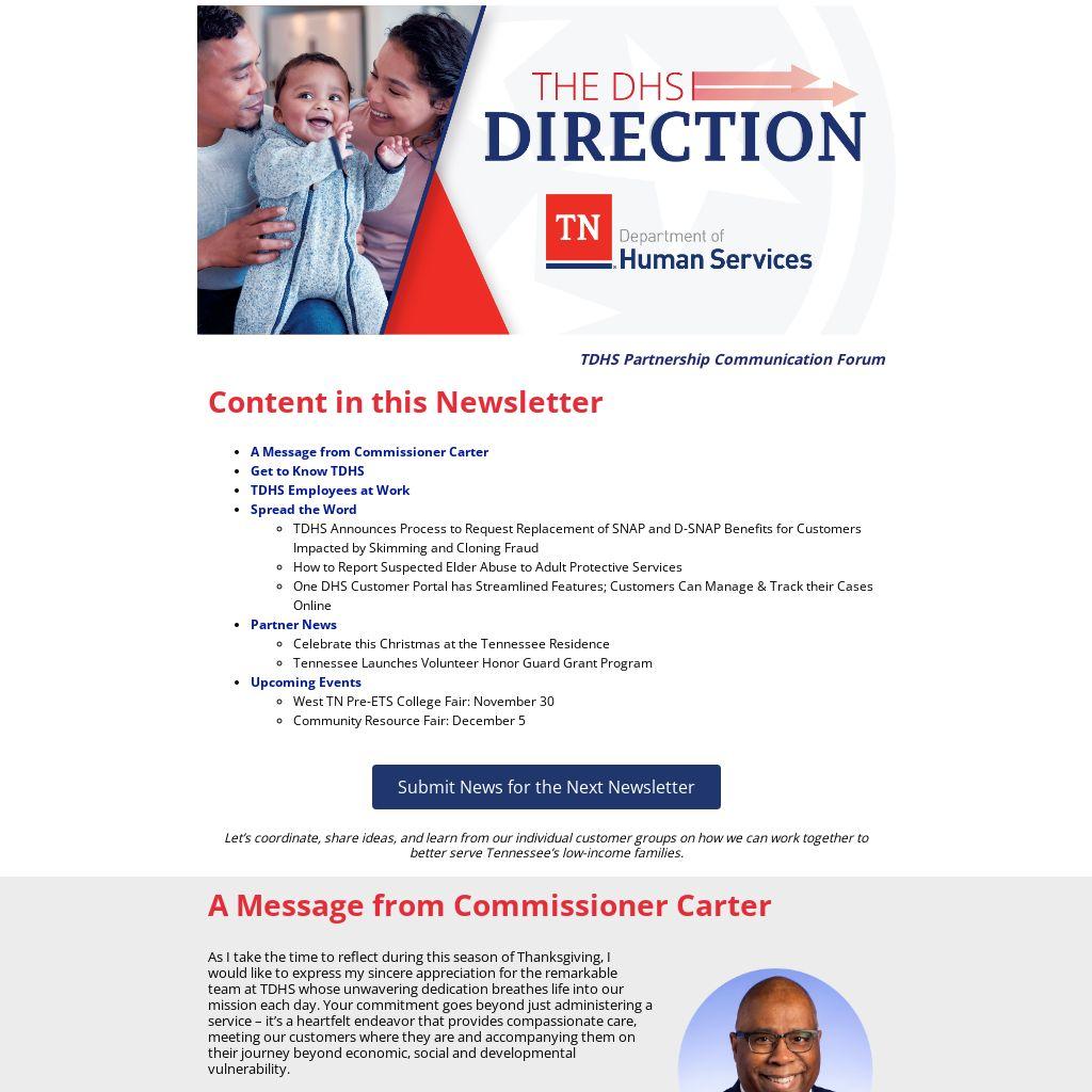 We serve nearly two million Tennesseans statewide, and your dedication in delivering a diverse range of programs and services have had a significant impact on countless lives. It does not go unnoticed. Thanks to your efforts, our customers have the opportunity to lead safe, healthy, and economically stable lives. And personally, I appreciate your ongoing commitment to this selfless work.