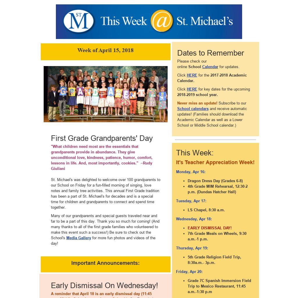 Current and past issues of "This Week at St. Michael's" are now archived on our website under " News and Events," as well as under " Community."