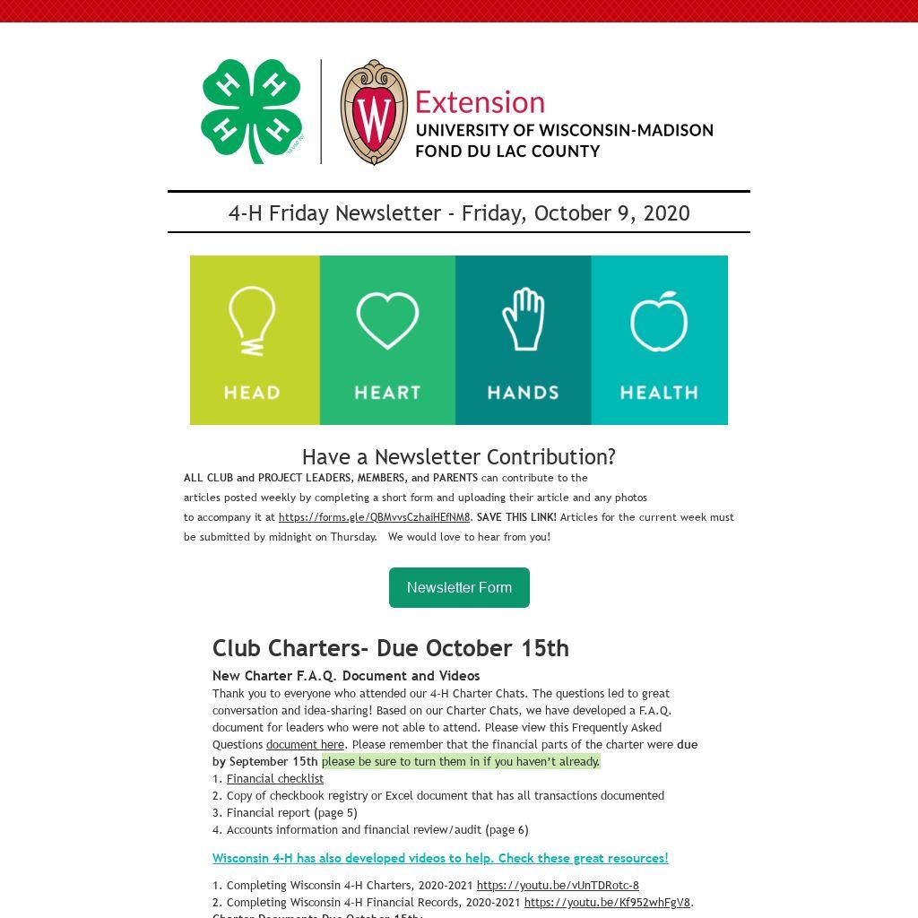 1. Completing Wisconsin 4-H Charters, 2020-2021 https://youtu.be/vUnTDRotc-8