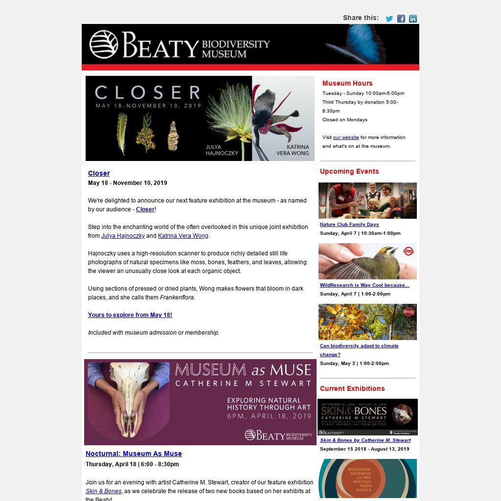 Invoking Venus opened at the museum in 2013 and juxtaposed images of bird specimens from the Beaty alongside those of sumptuous fabrics to explore the role colour, patterning and adornment play in courtship and attraction.