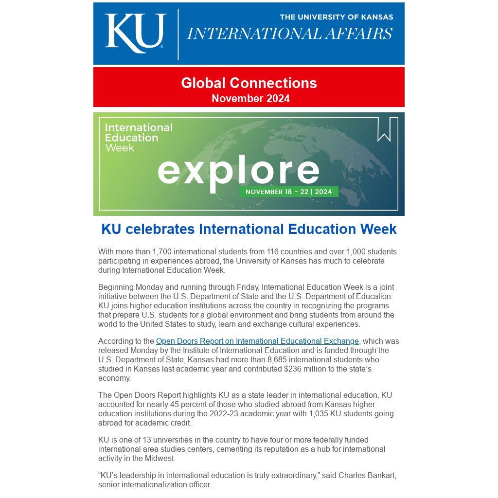With more than 1,700 international students from 116 countries and over 1,000 students participating in experiences abroad, the University of Kansas has much to celebrate during International Education Week.