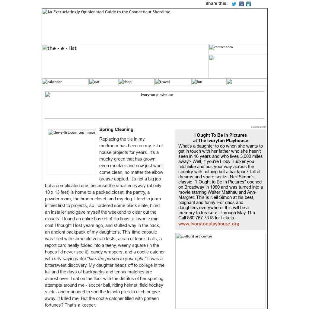 | Spring Cleaning Replacing the tile in my mudroom has been on my list of house projects for years. It’s a mucky green that has grown even muckier and now just won’t come clean, no matter the elbow grease applied. It’s not a big job but a complicated one, because the small entryway (at only 10 x 13 feet) is home to a packed closet, the pantry, a powder room, the broom closet, and my dog. I tend to jump in feet first to projects, so I ordered some black slate, hired an installer and gave myself the weekend to clear out the closets. I found an entire basket of flip flops, a favorite rain coat I thought I lost years ago, and stuffed way in the back, an ancient backpack of my daughter’s. This time capsule was filled with some old vocab tests, a can of tennis balls, a report card neatly folded into a teeny, weeny square (in the hopes I’d never see it), candy wrappers, and a cootie catcher with silly sayings like "kiss the person to your right." It was a bittersweet discovery. My daughter heads off to college in the fall and the days of backpacks and tennis matches are almost over. I sat on the floor with the detritus of her sporting attempts around me - soccer ball, riding helmet, field hockey stick - and managed to sort the lot into piles to ditch or give away. It killed me. But the cootie catcher filled with preteen fortunes? That’s a keeper. Wishing you a happy Easter and Passover,
